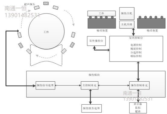 本系統(tǒng)適用于各種管、棒材內(nèi)、外部缺陷自動(dòng)檢測(cè)。超聲波探傷原理是超聲波經(jīng)水耦合進(jìn)入鋼管后,入射傳播,當(dāng)管棒材中有缺陷時(shí)會(huì)引起超聲反射,超聲儀器將超聲波反射信號(hào)經(jīng)放大信號(hào)處理后實(shí)時(shí)報(bào)警,實(shí)現(xiàn)缺陷的自動(dòng)檢測(cè)。